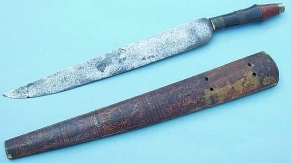 It is difficult to determine exactly what the first kinds of knife appeared in Taiwan were like. Archaeological sources and overseas collections may help confirm the antiquity of several designs. Archaeological sites across the Southwestern plain, dating to the 17th century, yielded several blades of similar profile, however due to the semi-tropical climate of Taiwan, many of these archaeological findings are in poor condition. For these extent examples, the scabbard and other fittings do not survive, but these knives vaguely resemble contemporary iconographic depictions of Sirayan knives used by Sirayan tribesmen by artists of the early Qing dynasty.