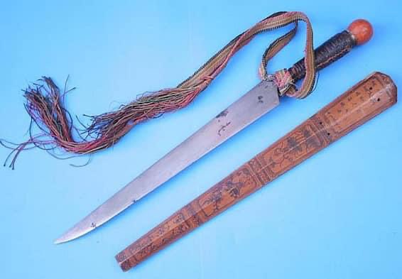 A common form of knife positively identified with lowland cultures is a short, straight-backed variety similar to some smaller, lalaw style northern knives. The design also happens to resemble fighting knives used by the Han Chinese that emigrated and eventually assimilated the Lowland tribes. The sheaths often displays artistic motifs often resemble Chinese art, possibly indicating that the production of these knives were possibly influenced by Chinese craftsmen.