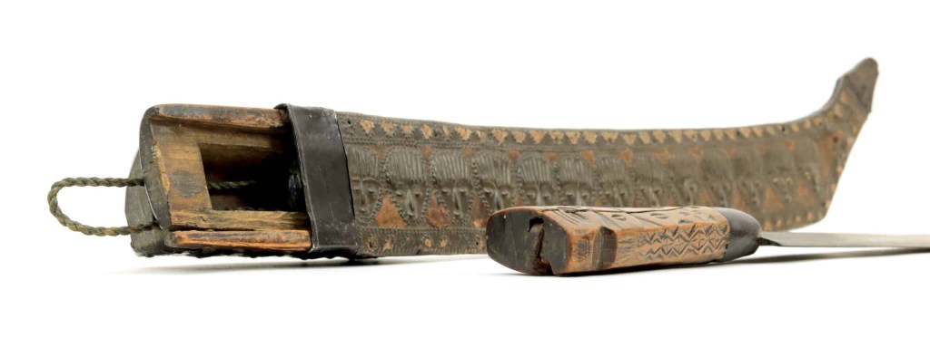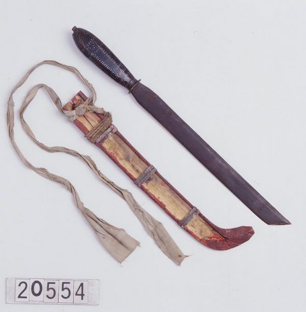 The Tjakit-type knife family is dominant in much of Southern Taiwan. While the dominant style of knife for Paiwan, Rukai, and Puyuma cultures, this type of blade was adopted by many neighboring peoples, including the Southern Amis, Bunun, Hla’alua/Saaroa, and the later arriving Taivoan and Makatao, though aspects such as scabbard and handle decoration was less widespread.