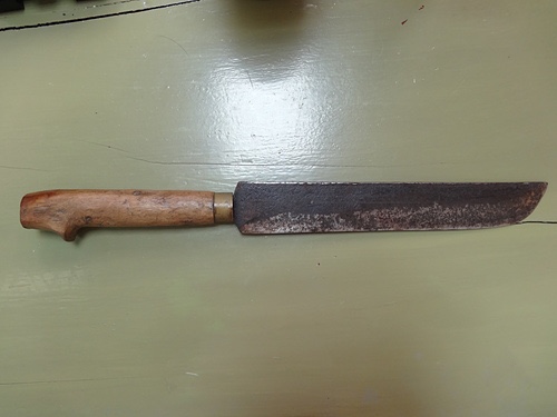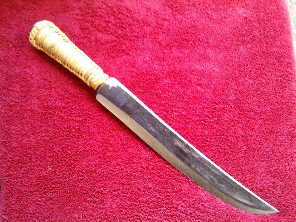 The Atayal also used knives similar to the Pojava called the Lalaw Topuw, which resembles a Barong in it’s semicircular blade profile, except for the fact that the back of the blade is completely straight, and features no false edge. The Atayal lalaw topuw was used more as a tool, were mostly socketed(I have yet to find one that isn’t), and usually under a foot long. When hafted(a common practice), it could be referred to as a Qopo.