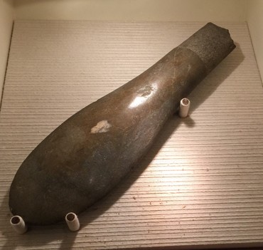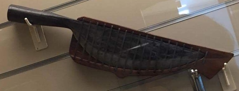 While some early examples attributed to the Siraya bears a vague resemblance to Southern knives, there is another archaeological example that is closer to home. A knife in the collections of the National Museum of Prehistory in Taitung features a lot of characteristics found in later knives of Southeastern Taiwan. This particular example can likely be attributed to the descendants of the Beinan culture i near the Taitung plain, and shares some features of southern knives. It bears a cylindrical handle with a totemic depiction of a man at the pommel area, resembling later Puyuma blades, and a narrow blade profile similar to the later knives of the region. While this particular example is rather short, it is likely that it resembles the ancestral form of the knives of this region.
