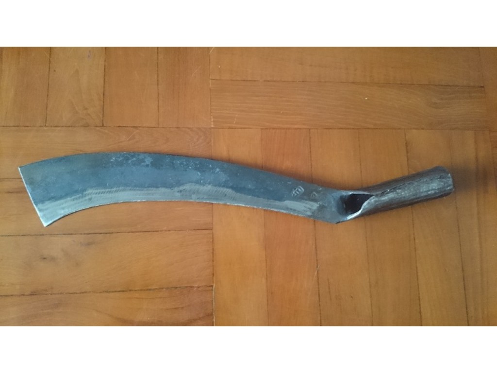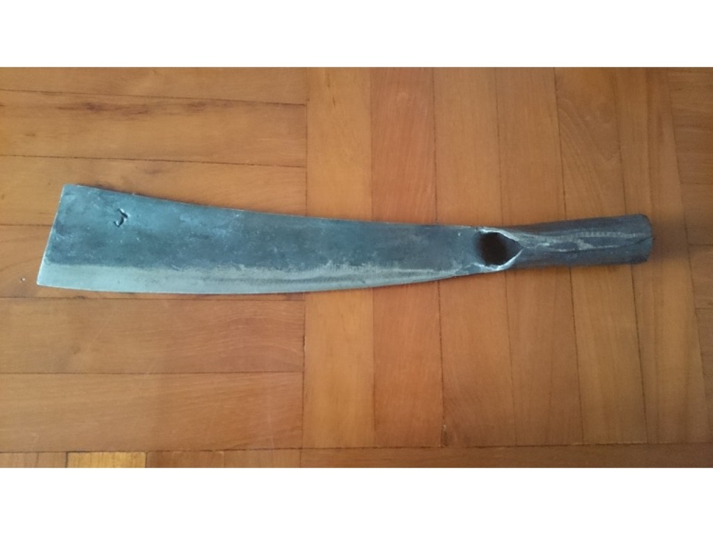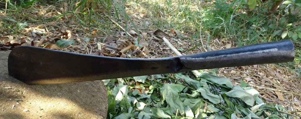 In Mainland Southeast Asia, the Dha/Daab/Dav used by the Burmese, Thai, and Khmer bears little resemblance to Formosan knives. This isn’t all that surprising as this particular family of swords is believed by many experts to have originated in the border region between China and Burma, possibly supplanting earlier forms of weapons systems. Despite the popularity of the Dha, many of the utility/“bush” knives and machetes feature socketed handles, such as the Cambodian Kakok and Kambet Bantoh, a double edged sickle shaped axe/machete. They’re are often hafted on a pole/handle of varying length, with the socketed handle allowing for more flexibility. The Thai also use a similar tool, which also commonly has a socketed handle. It is also interesting to note that these knives vaguely resembles the profile of the Kachin Dao, Naga Dao, and Achang Husa of more disparate regions. This possibly represents the survival of a once widespread knife culture that was relegated to the status of bladed tool as other designs were introduced and held to a higher level of prestige.