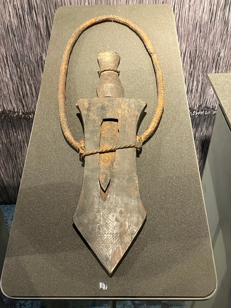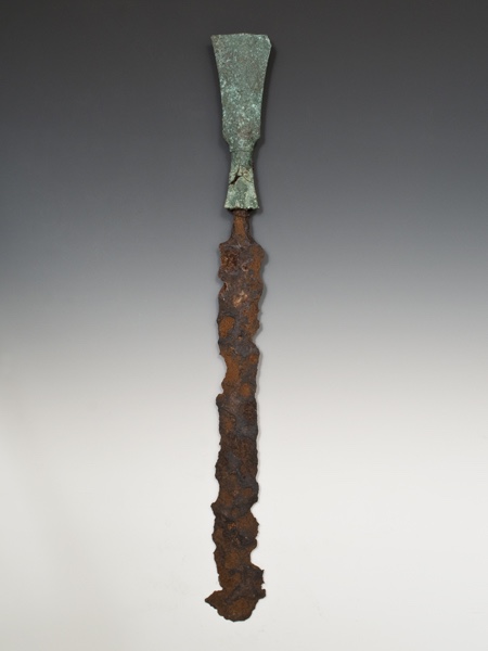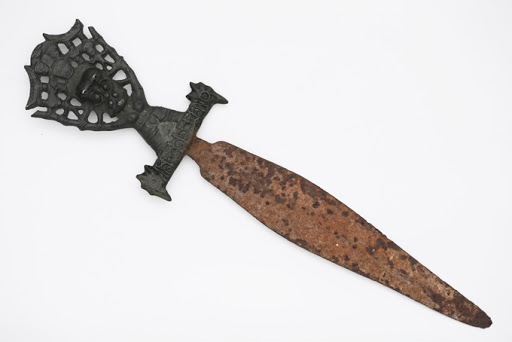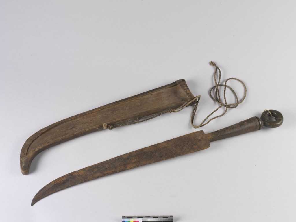 A particular knife kept in the Royal Danish Kunstkammer collection also shows some resemblance to the archaeological examples found in Southwestern Taiwan. The knife was recorded to have been in the collection since 1743 but could possibly be several years/decades older, thus more or less contemporaneous with the Qing depictions of Sirayan knives. Having been spirited away to Europe centuries ago, this knife is possibly the oldest intact Formosan knife, spared from environmental degradation and recycling, but as a result of this particular knife’s age and lack of records before its acquisition, it is difficult, if not impossible to determine exactly when and where this knife was made.