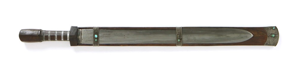 The Eastern Himalayan Plateau represents a crossroads of cultures, peoples, and empires, sandwiched between Indian, Tibetan, Chinese, and Burmese-Thai civilizations. It was through this region that Hinduism, Buddhism, Sanskrit, Architecture, Metallurgy, and many other influences traveled from India to Southeast Asia. While the Indo-Chinese peninsula is inhabited by Tai Kadai and Austronesian peoples, a variety of Tibeto-Burmese speaking peoples occupy its North-Western border. Though knife/sword designs in this region vary widely, with some seemingly having taken on influences from Chinese daos and swords, the open sided scabbard seems to be a shared tradition. The Sikkimese Ban, and to some extent, the Tibetan Dpa’dam and Bhutanese Patag swords/knives feature open faced scabbards that are reminiscent of those in Taiwan. In particular, the forms of these blades are somewhat similar to that of the Paiwan Tjakit, as the many Bhutanese Patag swords also happen to have handles with an octoganal cross section, and shares a similar blade profile. However it is likely that the form of these blades have long since changed from any initial design that might have once been popular throughout Southeast Asia.