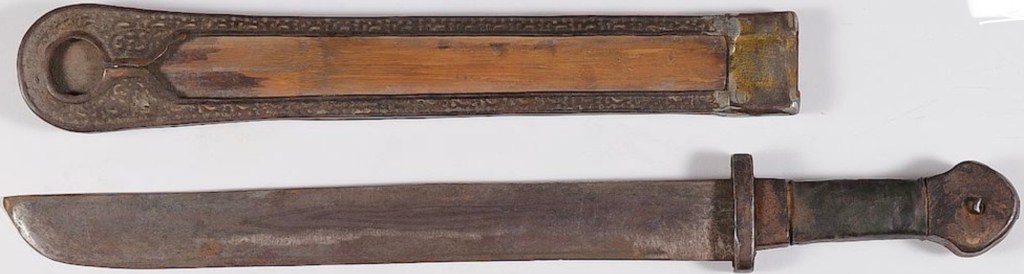 From scant archaeological remnants and contemporary artistic depictions, it does seem like in Iron Age Java, a khanda-like sword similar to what was being used in India at the time was popular. This sort of design may have been reflected in the Naga/Kachin Dao, which shares the widening blade profile and handle design. It seems the one sided scabbard was an idea that was also present and spread at the time, shared by far flung regions. As time progressed, some like Sikkimese Ban, Tibetan Dpa’dam, Bhutanese Patag, and possibly Paiwan Tjakit seem to have a kept using one sided scabbards, but adopted more Chinese influenced blade profiles.