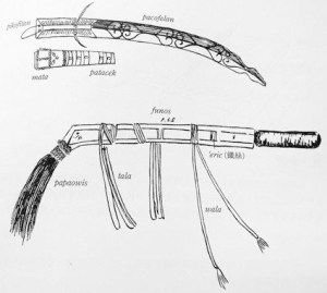 Interestingly enough, the Paiwan treasure ancient iron daggers with bronze handles referred to as “tikuzan ni tagarus” that greatly resemble those found in early Iron Age sites throughout Taiwan. The daggers are often rusted and patinated and served as family heirlooms of aristocratic families. The apparent age and importance of these artifacts might suggest that these daggers are possibly the relics from an older time, as breakdown of trade between Taiwan and the rest of Southeast Asia resulted in loss of access to copper and thus the ability to produce such items.