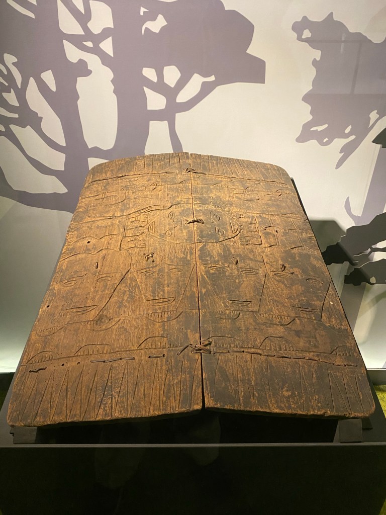 Warriors of the Paiwan, Rukai, and Puyuma were traditionally armed with spears, shields, swords, and occasionally bows, and later guns, with the primary weapons being the spear and the shield. The Southern Taiwanese shield is usually horizontally center gripped, rectangular, and made of 1 or 2 planks of wood. Many shields made of 2 planks often have a slight V cross section, with the junction between the 2 pieces secured by natural cordage woven through predrilled holes. The handle is similarly woven on. Theses shields varied in size, ranging from body sized to 1-2 feet in height, with a gradual shrinking in size as firearms became more prevalent. While these shields lost much of their battlefield use as time moved on, they were retained as ritual and cultural objects. However, it is important to keep in mind the role of the shield in the past when it comes to the swords of Southern Taiwan.