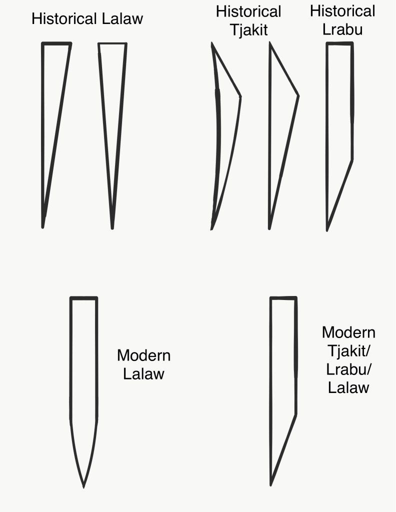 Another grouping that can be considered are the blades of the Puyuma, Paiwan, and Rukai, referred to as the Tjakit in the Paiwan language, the TaDaw in Puyuma/Pinuyumayan, and Lab/Lrabu/Rinadrug in Rukai.
